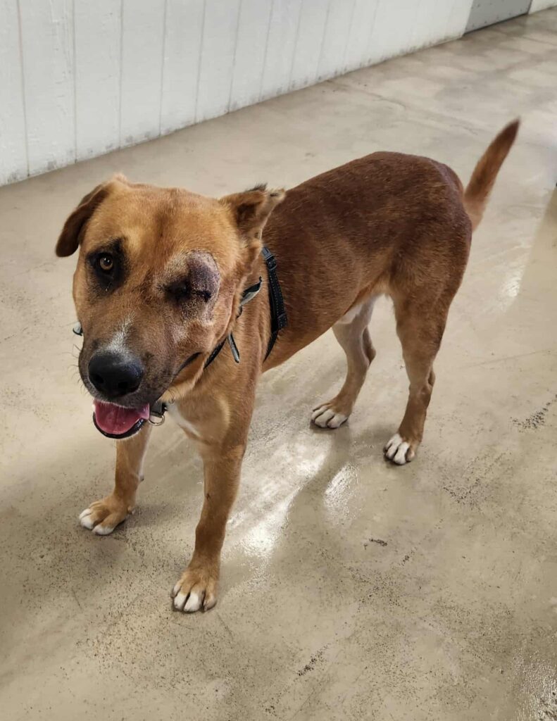 George has been at TRN before. He was pretty fearful about getting into the van for transport, so we decided to leave him back at the shelter for his safety. We hear he’s improving, so we’re going to give it another go. He is Kaia’s kennelmate and he’s a big sweetheart. He’s quite loving and just really wants to be with his person. He still needs to be neutered and when the PACC clinic does that surgery, they will also do the eye removal surgery for his old-injury eye. We’d love to find him his forever home, or even a temporary foster, so that he can finally have his surgeries done. He is available to adopt or foster.