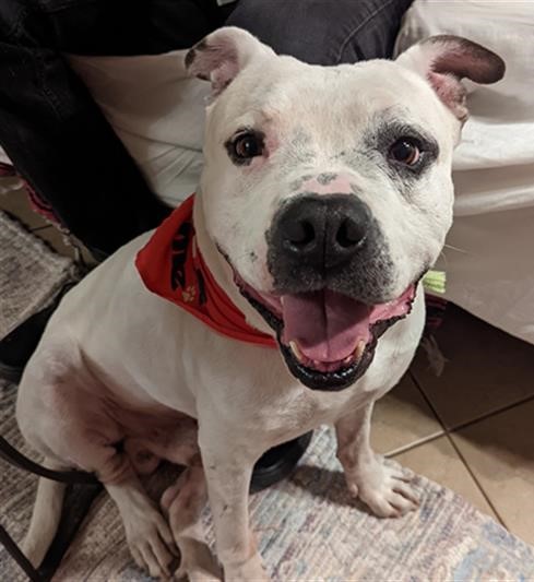 Astrid is loving life outside of the shelter in her foster home. Her foster family adores her and wants her to find the very best forever home. She is gentle with the active young kids in the home–she even adjusts her playstyle with them so that she isn’t too rough. She loves car rides, is a huge snuggler (she even comforts the kids when they’re crying), plays a little fetch, appreciates a spirited game of tug and enjoys rolling in the grass. She’s a great mix of play time and just hanging out with her people. She is technically a senior, but you’d never know it; she enjoys life and loves to de-squeak toys in record time. This is one truly special gal. She is available to adopt.