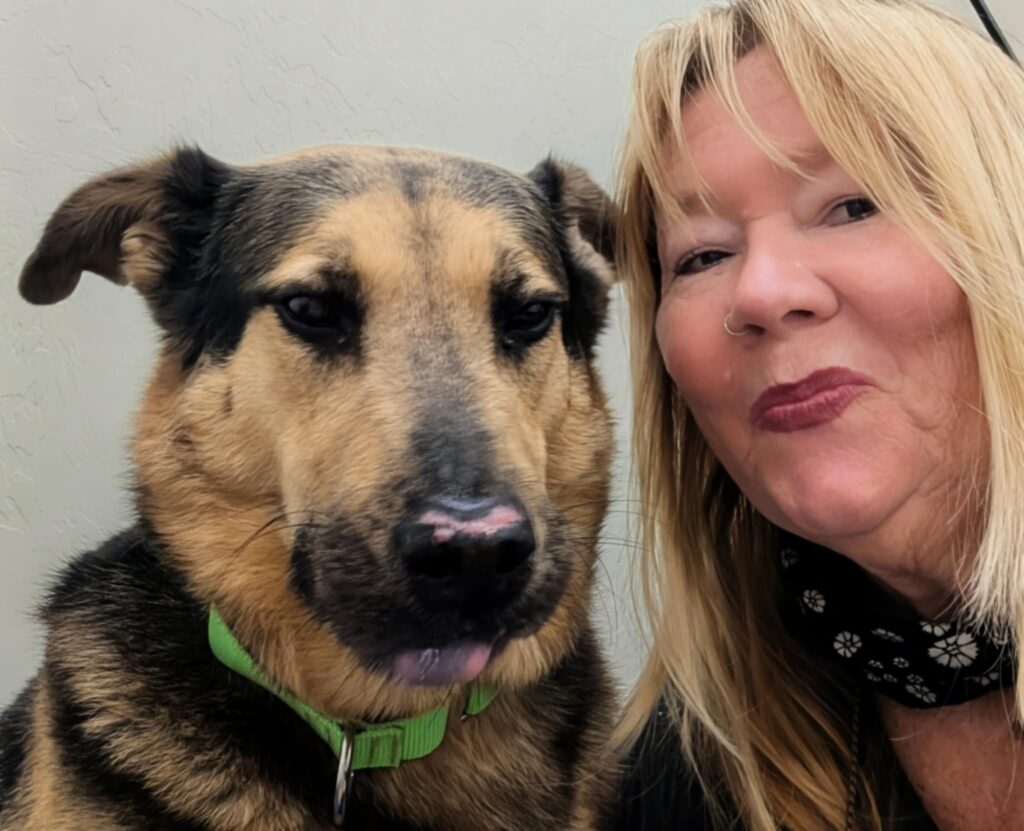 His new mom came in today after having an emotional day out at PACC yesterday. After spending a lot of time with him and going for a walk with one of our volunteers, McNulty decided she was the right person for him! He adjusted his walking pace to stay right with her and as you can see in one of the pics, he was already content to be at her feet. We think this is a lovely match for them both, and we hope they have lots of happy tomorrows together!