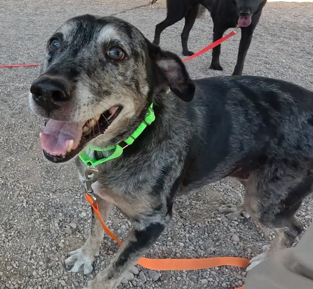 Remember Bro Dale from a few months back? Well, his mom stopped in today to make it official, he is HOME! They are another multiple dog TRN family. His sister was a former PACC dog who was adopted when we were still up at La Encantada a few years back. His mom recently found out that he has Valley Fever, so we’re hoping being on meds will get it under control and he will put on the weight he needs. But he is well-loved and he and the cats do just fine these days, although that first experience wasn’t his favorite, lol. His mom saw Gucci’s sploot pic and wanted to share Bro’s sploot. We think his is pretty great, too!