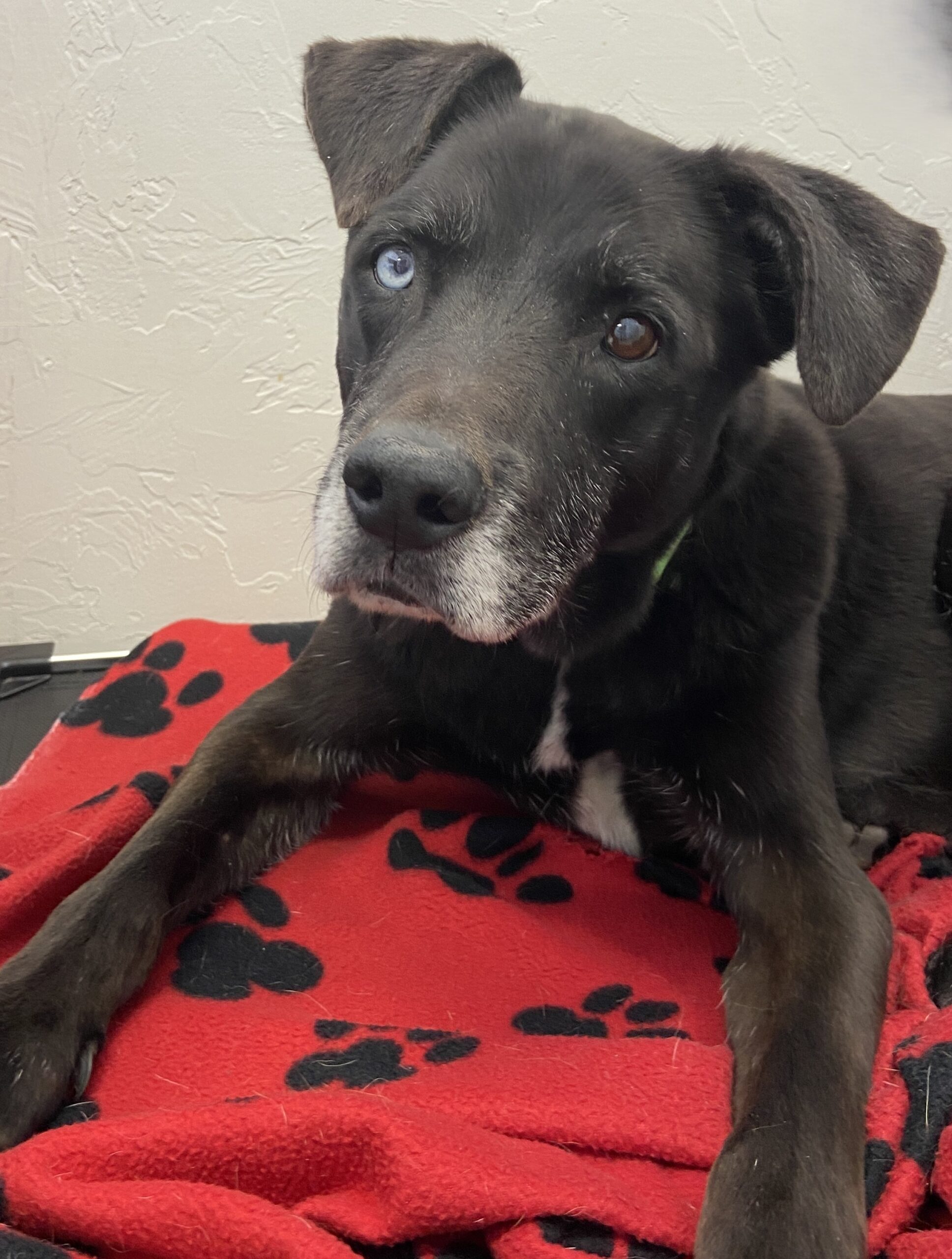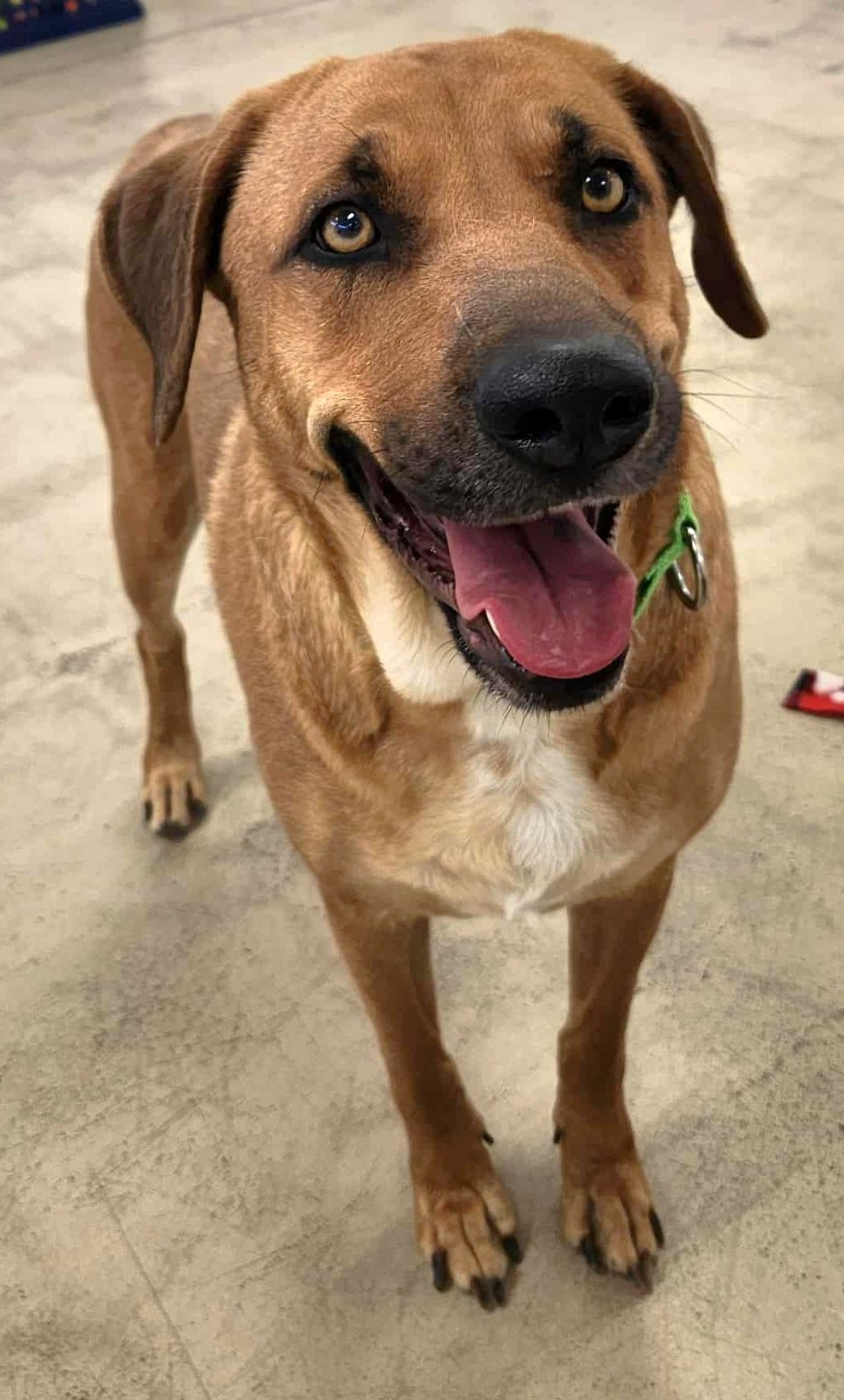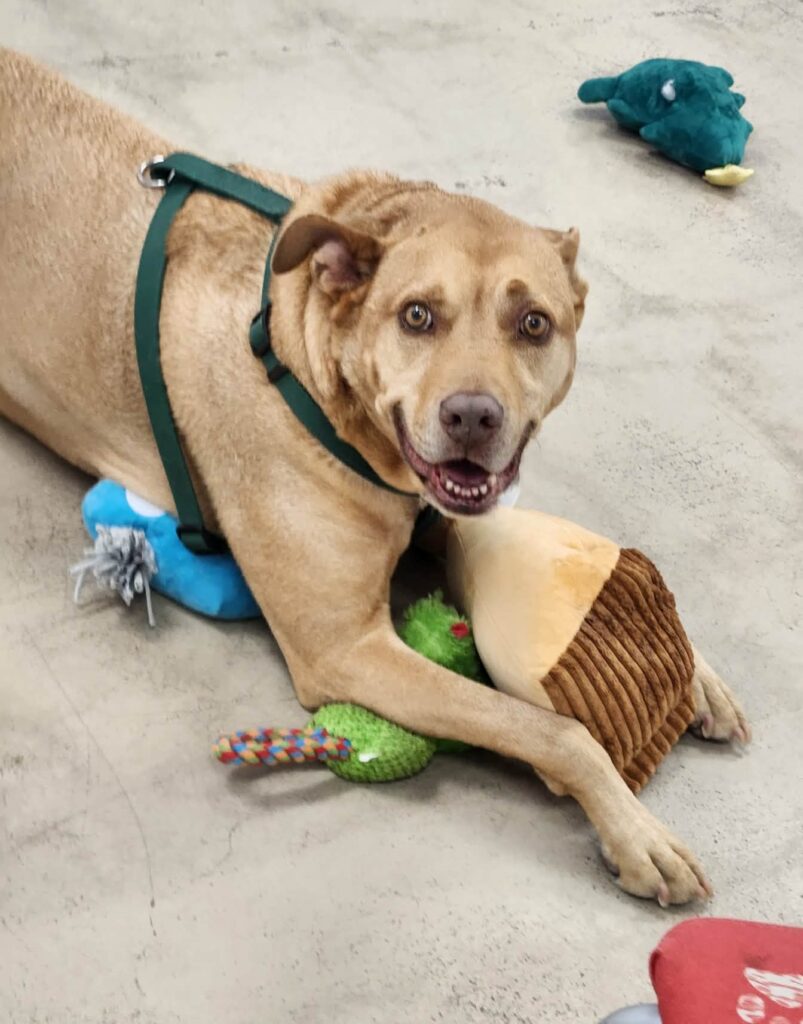He is good with dogs off leash. PACC told us he was great in play and with his kennel mates. He is also the MOST gentle dog with play. He is so careful with his mouth. (Unless you’re playing tug) then he does not pay attention to where your hand is lol. He’s very active and full of life for sure.