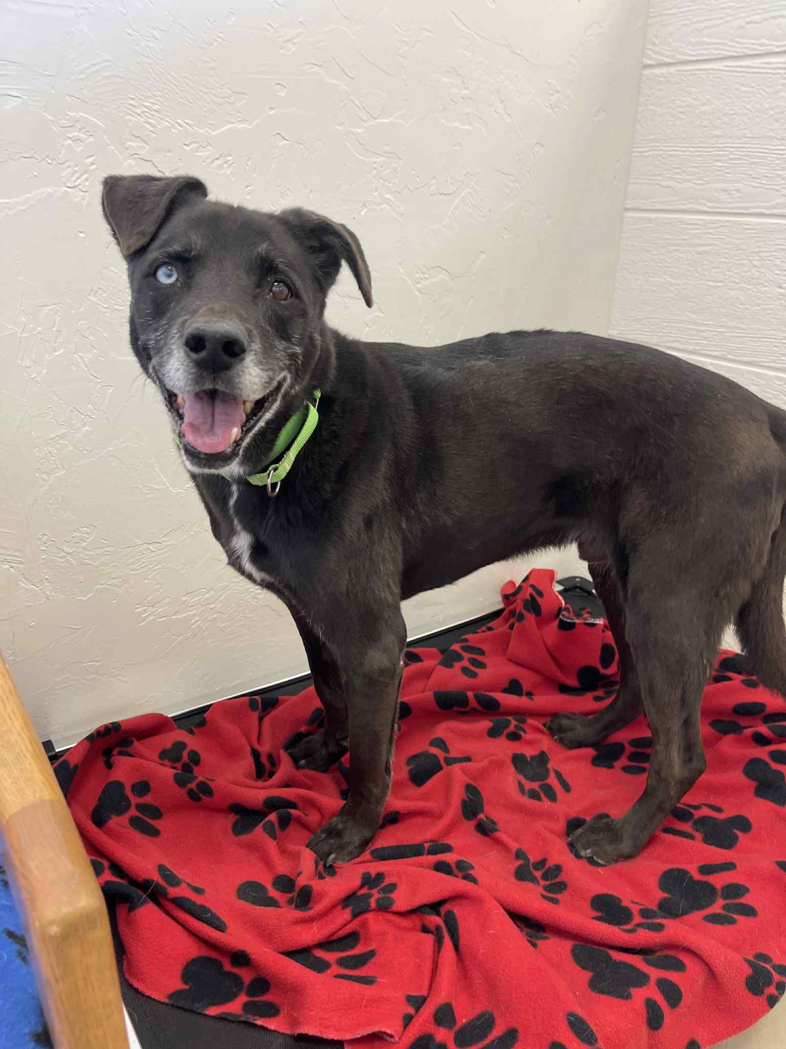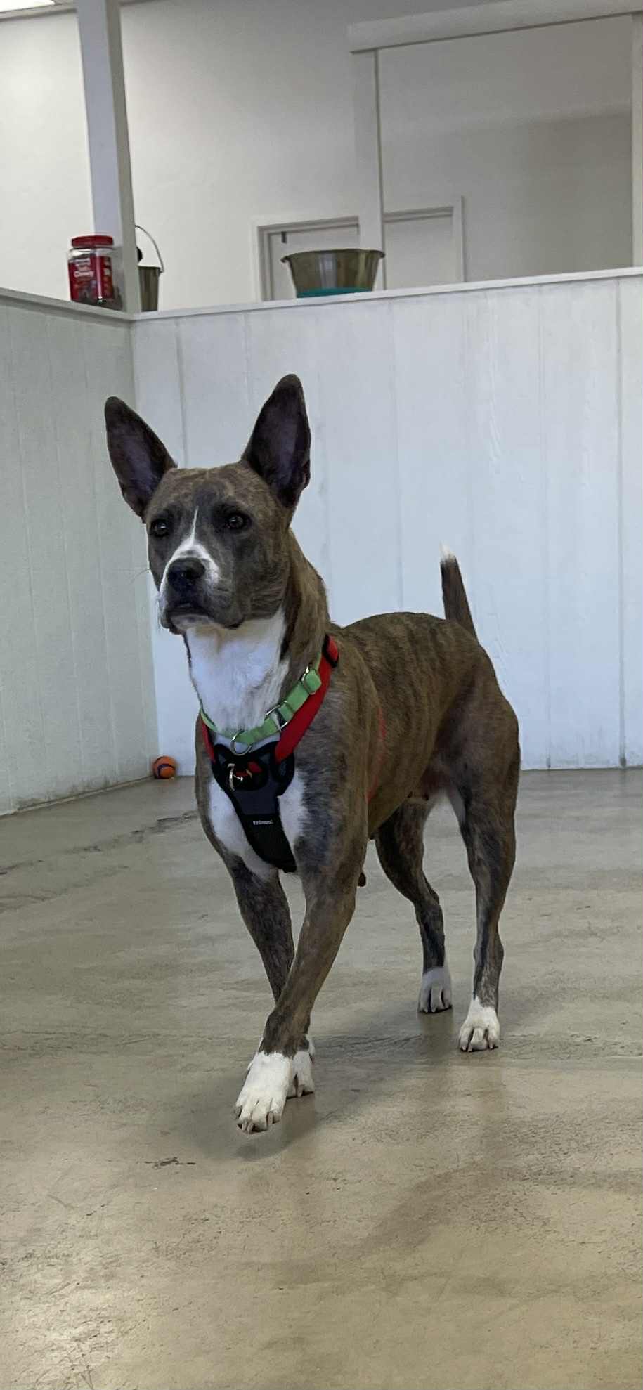*Walks although he’s a bit dog reactive on the leash and pulls. We use a gentle leader with him.