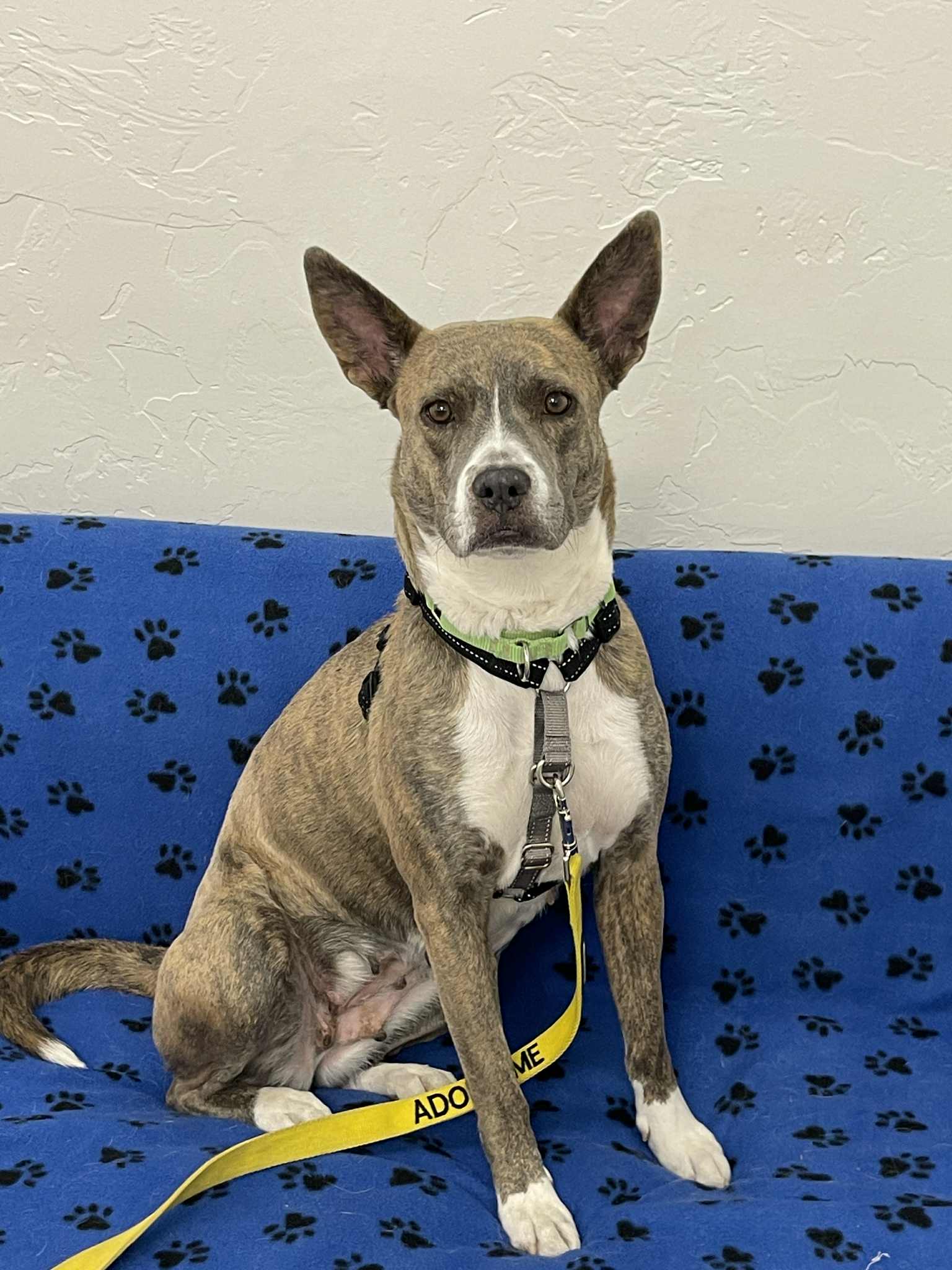 Cochise arrived at PACC after her person passed. She is pretty shut-down (understandably), and shelter life makes her nervous. She has done ok in play group, so a furry pal might be ok; she’d like to meet them before heading home, please. She walks nicely on leash, loud sounds like big garbage trucks spook her. While she’s not big into toys yet, she does enjoy yummy treats and gentle pets. She is looking for a calm loving place to call home. She is available to adopt or foster.