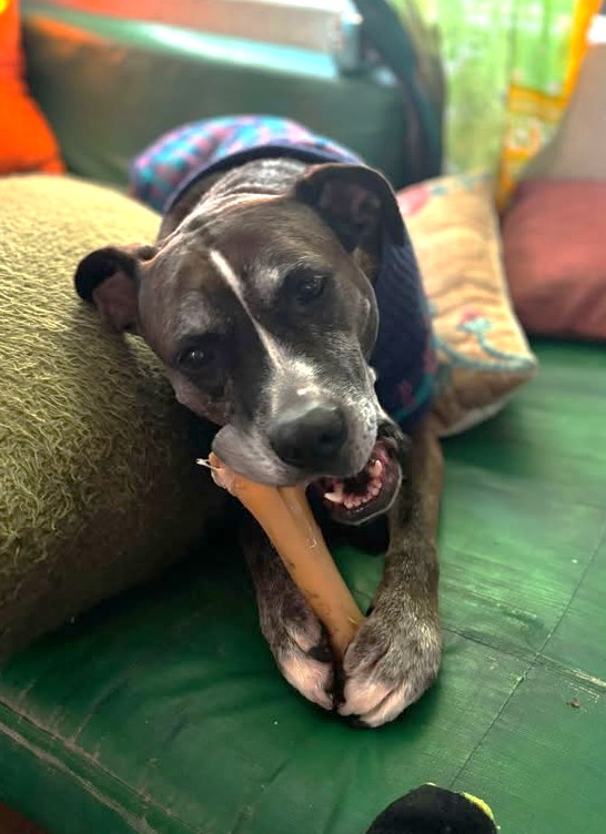 Astrid is adored by her long-term foster family, especially the two young boys she loves to play with! They want her to find the very best forever home. She loves car rides, is a huge snuggler (she even comforts the kids when they’re crying), plays a little fetch, appreciates a spirited game of tug and enjoys rolling in the grass. She’s a great mix of play time and just hanging out with her people. She is technically a senior, but you’d never know it; she enjoys life and loves to de-squeak toys in record time. She was previously housed with male dogs at PACC, although after being the one and only dog in the home, she seems to prefer it that way. This special gal will steal your heart! She is available to adopt.